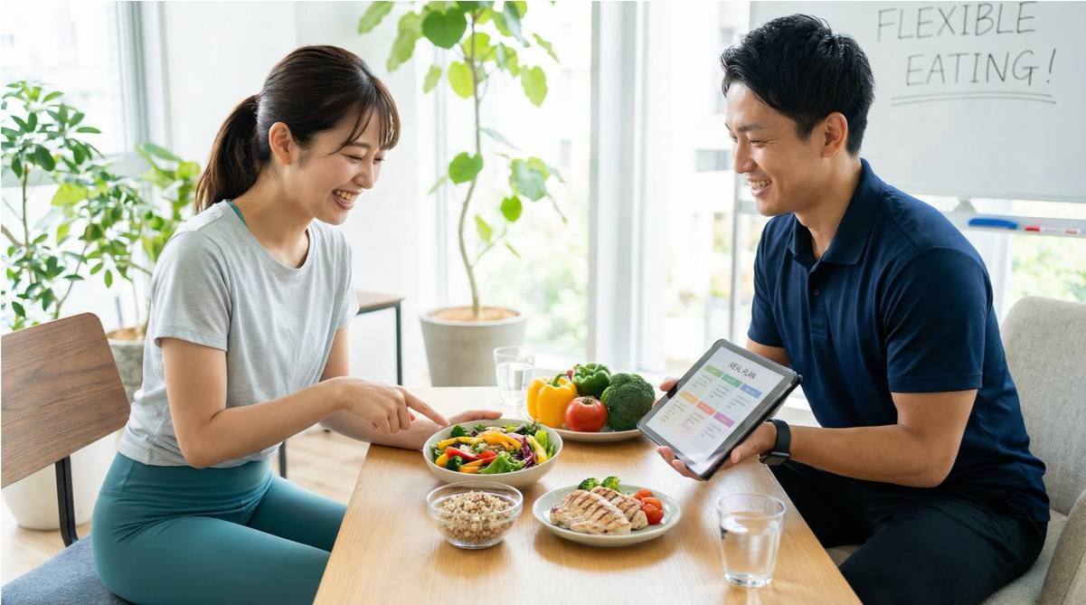 実は、「パーソナルジムの食事指導=きつい」というイメージは、もはや過去のものです。現代の優れたパーソナルジムでは、あなたのライフスタイルや好みを無視した無理な制限を課すことはありません。むしろ、科学的根拠に基づき、「いかに賢く、美味しく食べながら痩せるか」をサポートしてくれます。